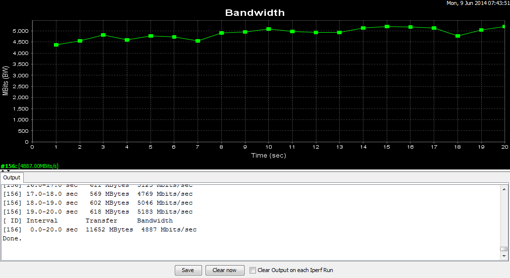 Vão obter um gráfico com a taxa de transferência de dados. O gráfico deverá ser mais ou menos plano. Caso haja muita variação, pode indicar problemas com a cablagem. Em redes Wifi a variação será maior. Também se o teste for feito com routers/switch no meio e houverem outros equipamentos ligados, contem com variações na medição. Mas é uma excelente ferramenta de diagnóstico e alternativa a alguns equipamentos oficiais (e caros!) para medição de transferência de dados em redes informáticas.