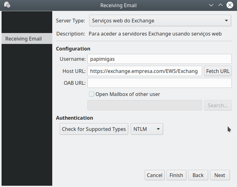 Há outros programas em Linux que também se ligam a um Exchange server mas na minha opinião nenhum funciona tão bem como o Thunderbird 🙂