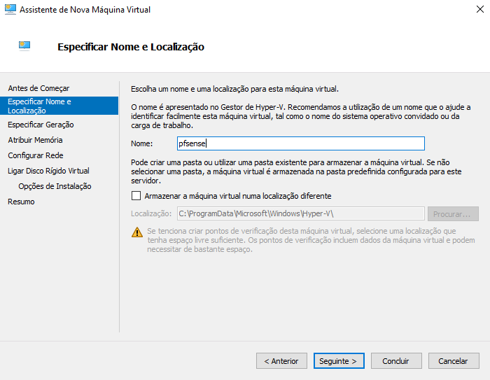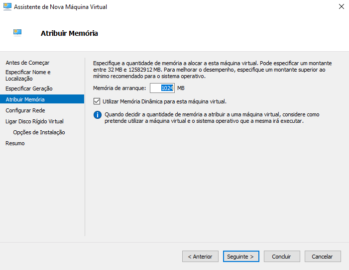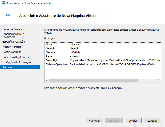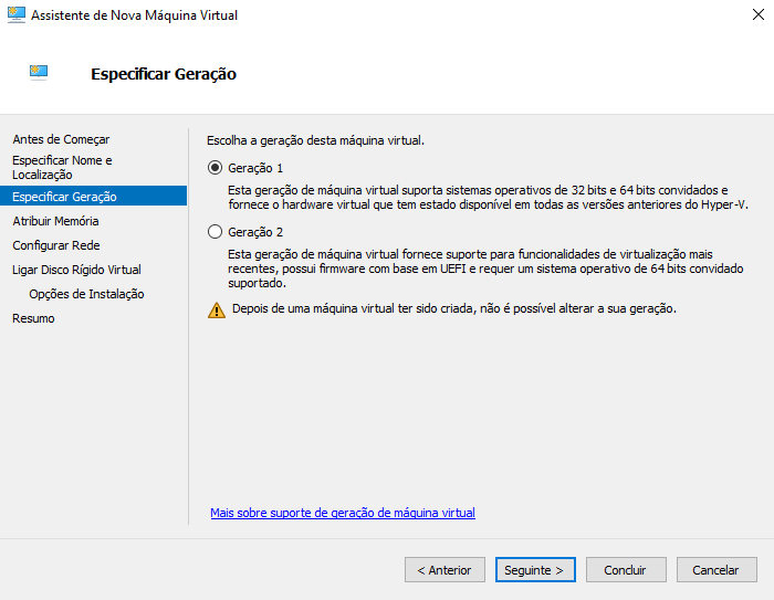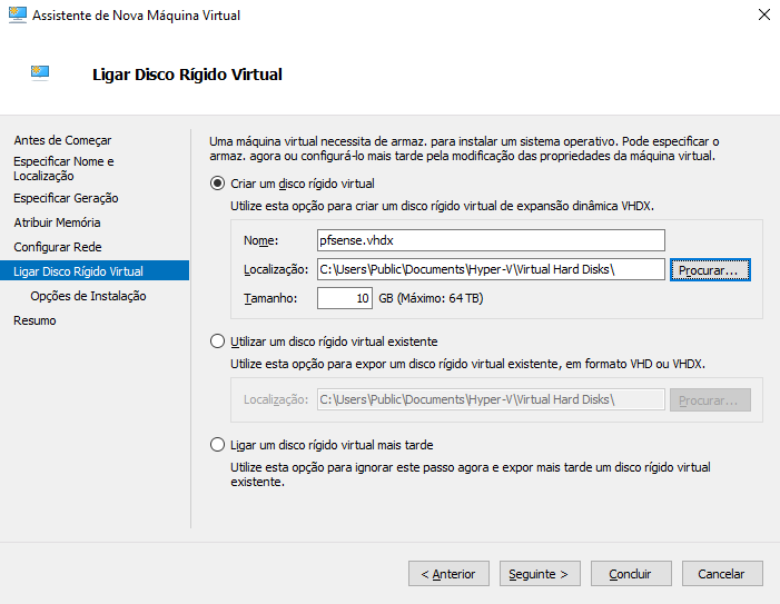 Começamos por criar uma VM no nosso Hyper-v. Convém criar uma imagem o mais simples possível já que ao ser migrada para Azure vai ser necessário executar o setup de rede inicial. Deixem as configurações adicionais para depois. Também vou criar a VM com uma única interface de rede e um disco de 10GB.