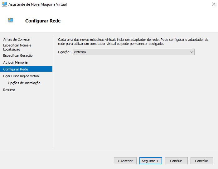 Criei previamente uma rede do tipo externo