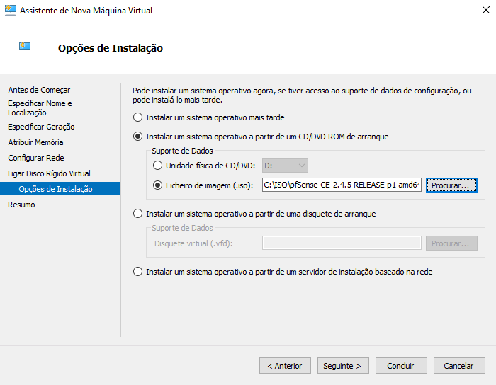 – a imagem oficial da Netgate (AMD64, ISO)