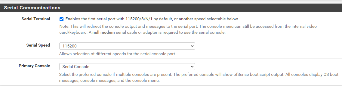 Vamos a System -> Advanced e activamos a consola via terminal serie: