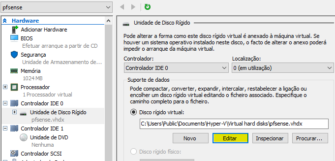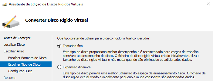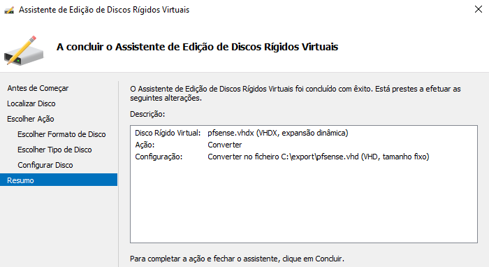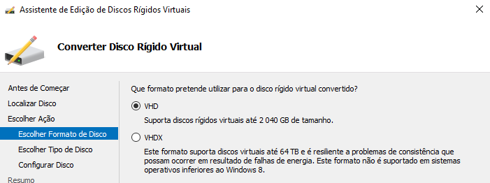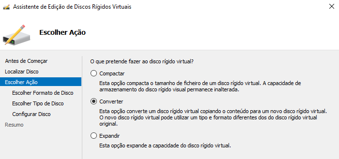 Começamos por converter o disco nativo do Hyper-v de vhdx para vhd.