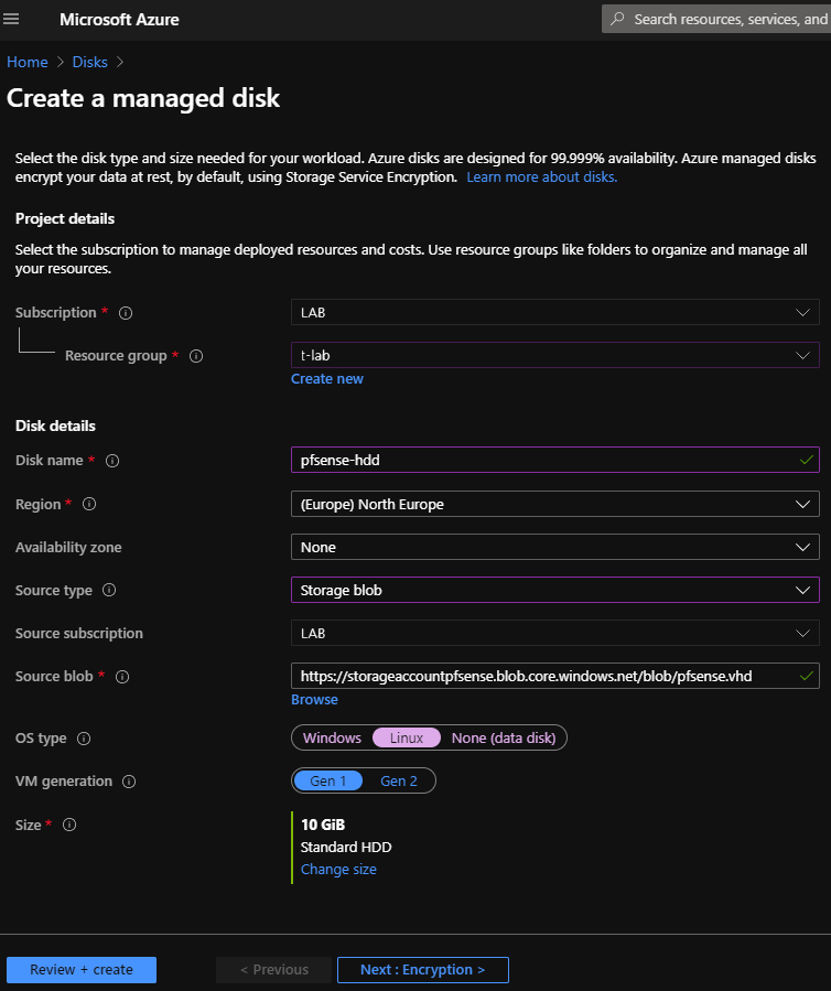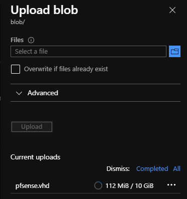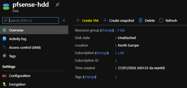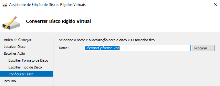 Por fim vamos exportar a nossa firewall para VHD, para depois fazer o upload para Azure.