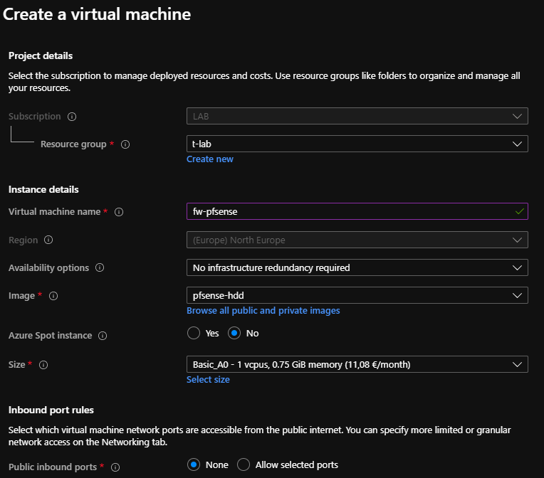 No entanto, por questões financeiras podemos querer usar um tipo de VM mais baixo, como por exemplo a gama A0 e eliminar o custo de uso do software. Dá algum trabalho, mas a dificuldade é relativamente baixa.