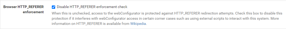 Activamos também a opção Browser HTTP_REFERER enforcement: