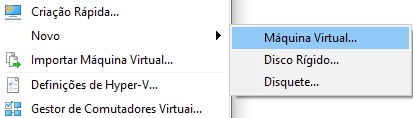 Abrimos o gestor do Hyper-v e clicamos em novo -> máquina virtual: